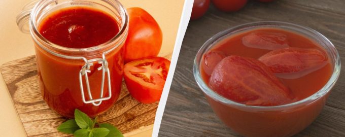 Tomates em sumo de tomate – uma preparação muito saborosa, conveniente para cozinhar pratos de tomate.