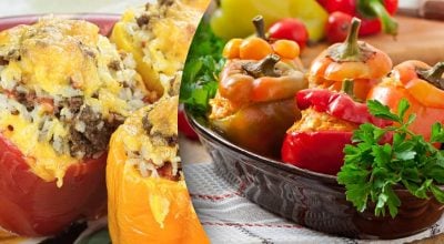 Receita de pimentos recheados com um recheio suculento. Link copiado Pimentos recheados – receita / colagem: My, foto: depositphotos.